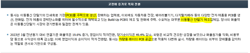 향후 차량용 레이더 PCB 공급으로 사업확대를 노리고 있네요.