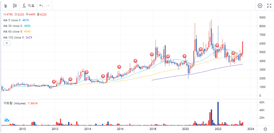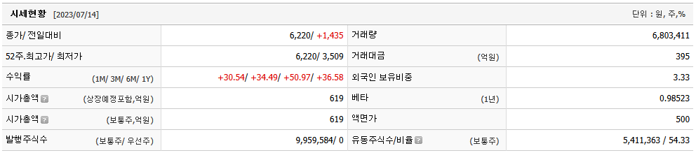 시가총액 619억이고 유동주식수가 약54%이며 최근 1년동안 높은 수익율을 나타내고 있습니다.