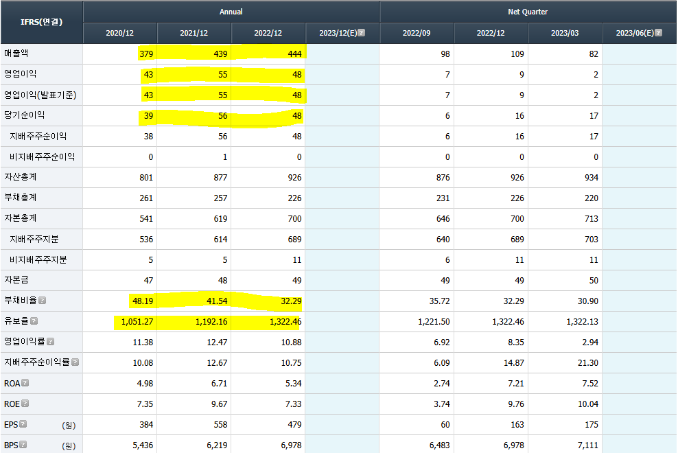 부채비율은 줄고 유보율은 늘어 긍정적입니다.