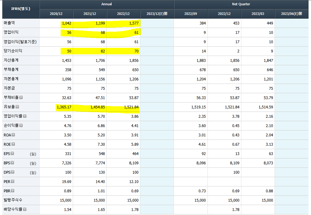 영입이익,당기순이익은 21년대비 22년이 약간줄었는데 선방한걸로 생각됩니다.