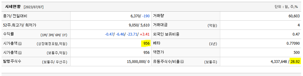 시가총액 956억이고 유동주식수가 약29%밖에 안되는 품절주네요.