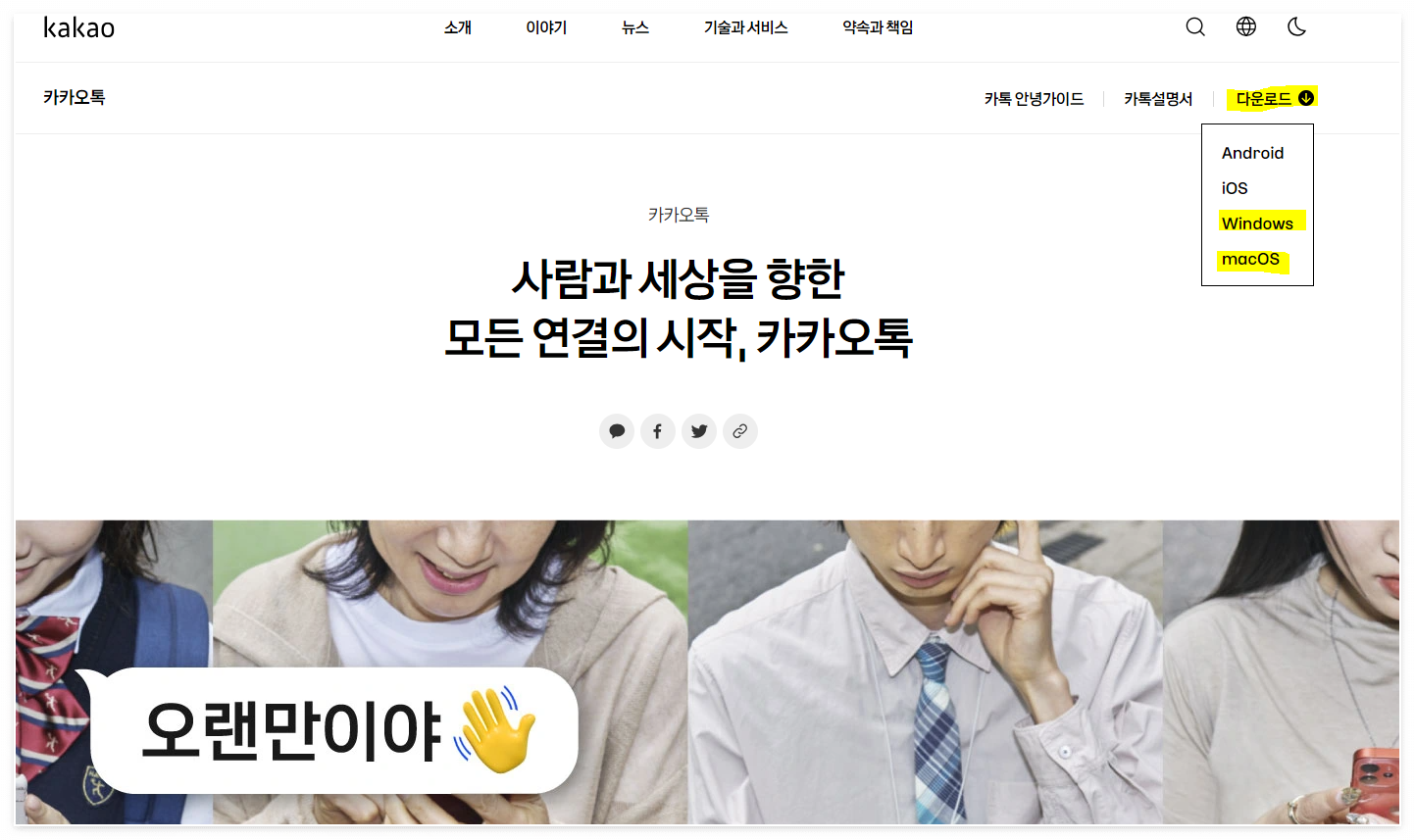 | 2. 카카오톡 홈페이지를 통해 다운로드받기