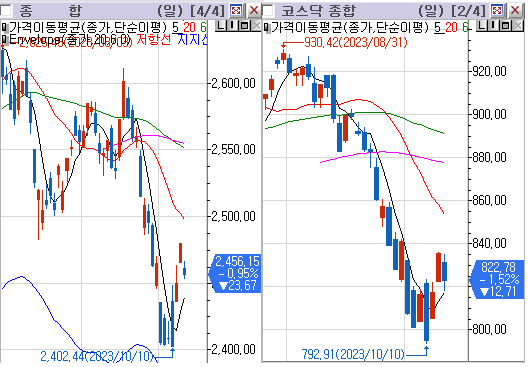 코스닥 전일대비 하락(음봉) 마감