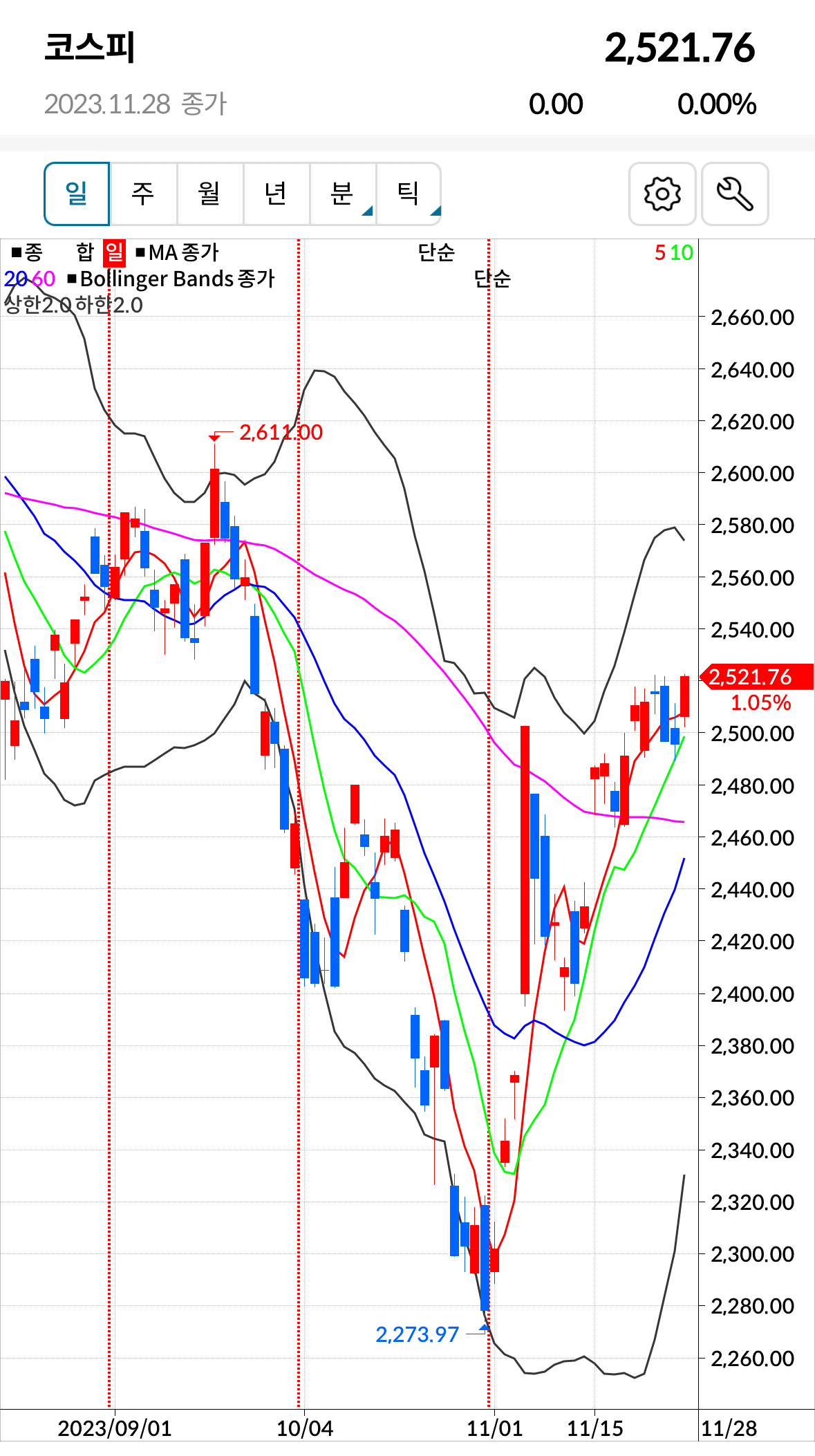 * 코스피 전일대비 상승(양봉) 마감