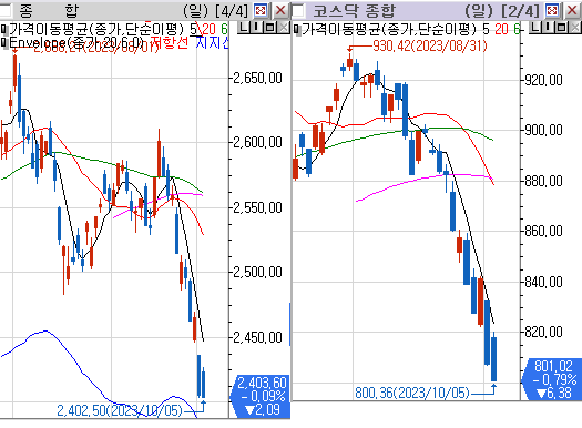 코스닥 전일대비 하락(음봉) 마감