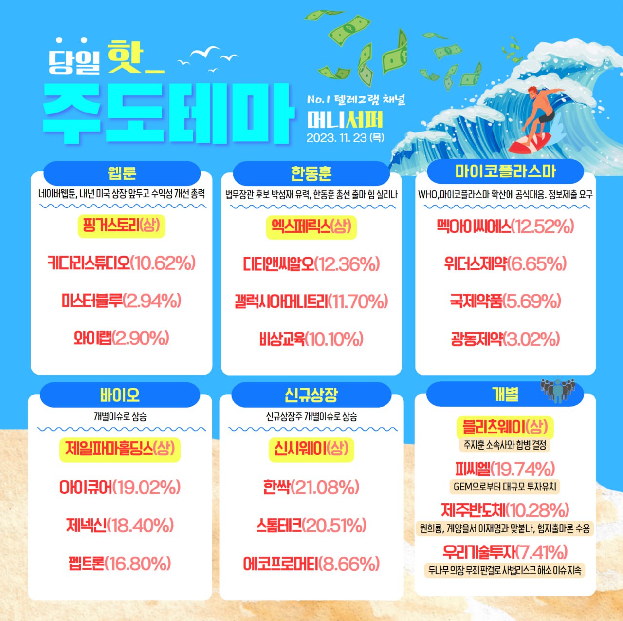 ★한국증시 주도 테마 2023년 11월 23일★