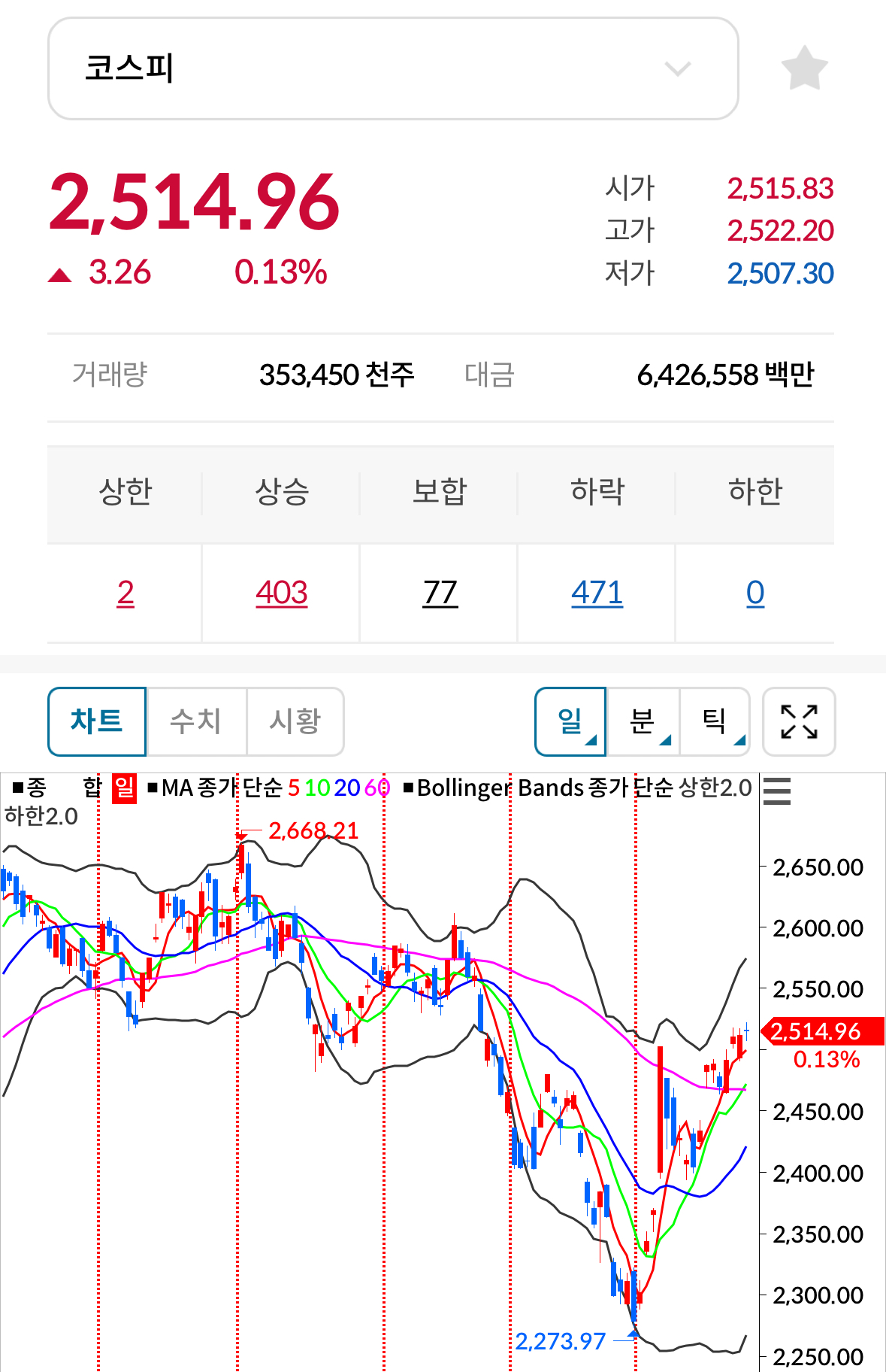 * 코스피 전일대비 상승(양봉) 마감