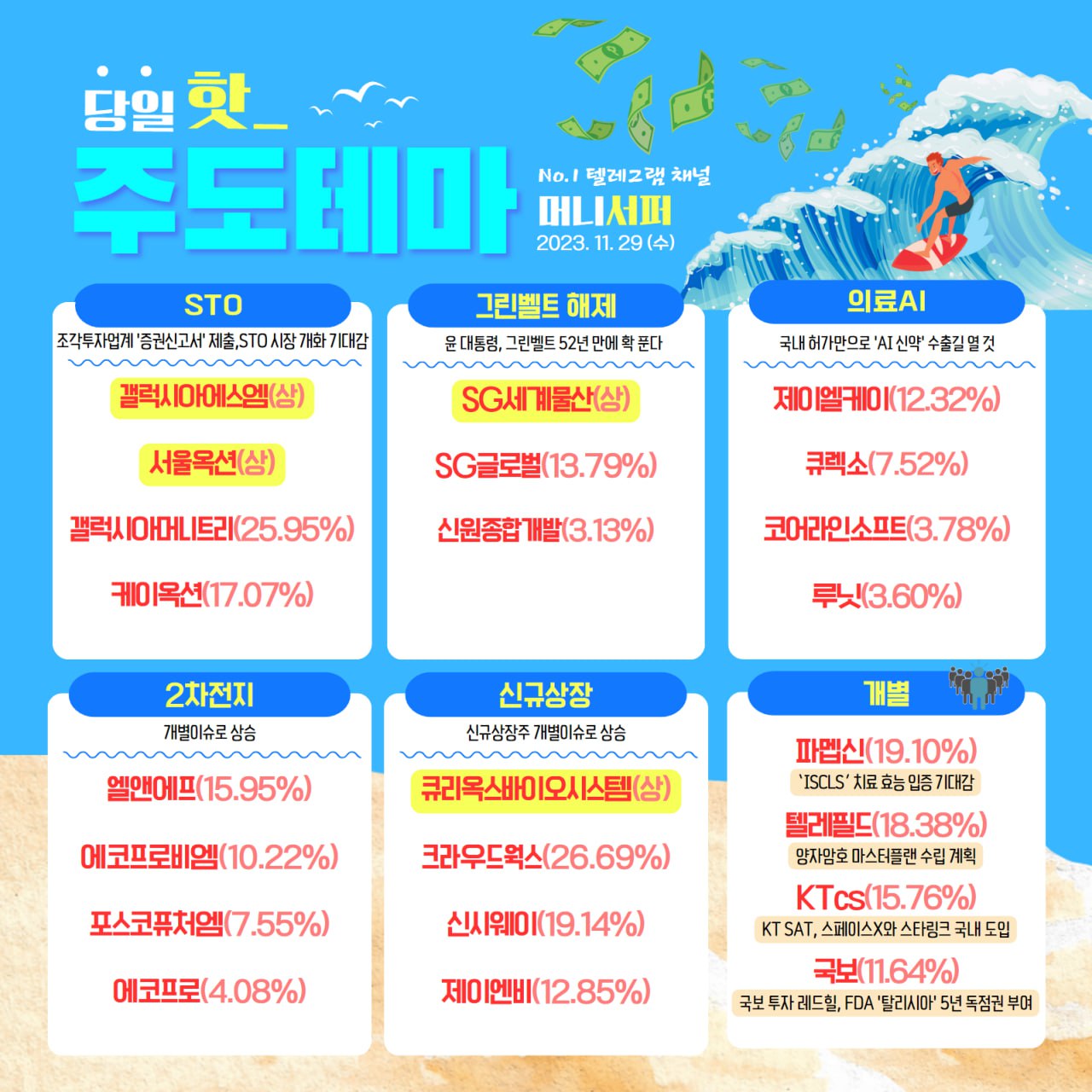 | 한국증시 주도 테마★ 로봇 한동훈 바이오 반도체 웹툰 ★ (2) | 2023.11.29 |