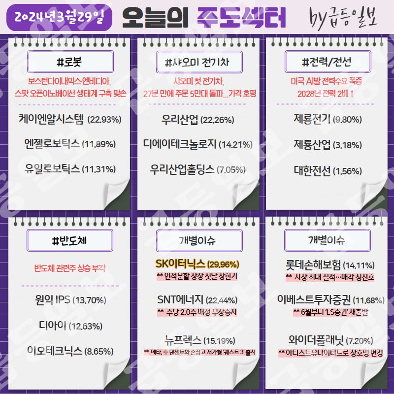 | 한국증시 주도 테마 ★ 보안 HLB그룹 바이오 반도체 ★ 샌즈랩 케이사인 모니터랩 HLB이노베이션 삼천당제약 한미반도체 (3) | 2024.03.26 |