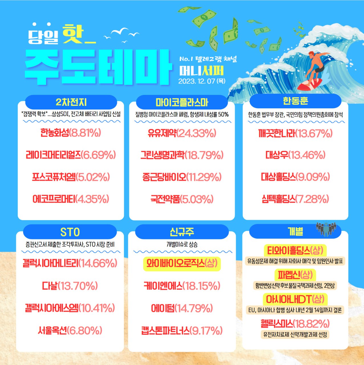 ★한국증시 주도 테마 2023년 12월 7일★