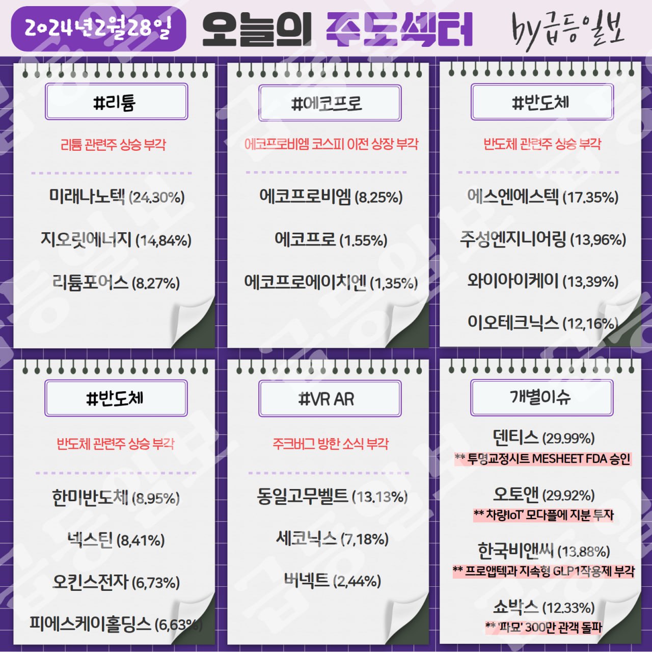 ★한국증시 주도 테마 2024년 2월 28일★