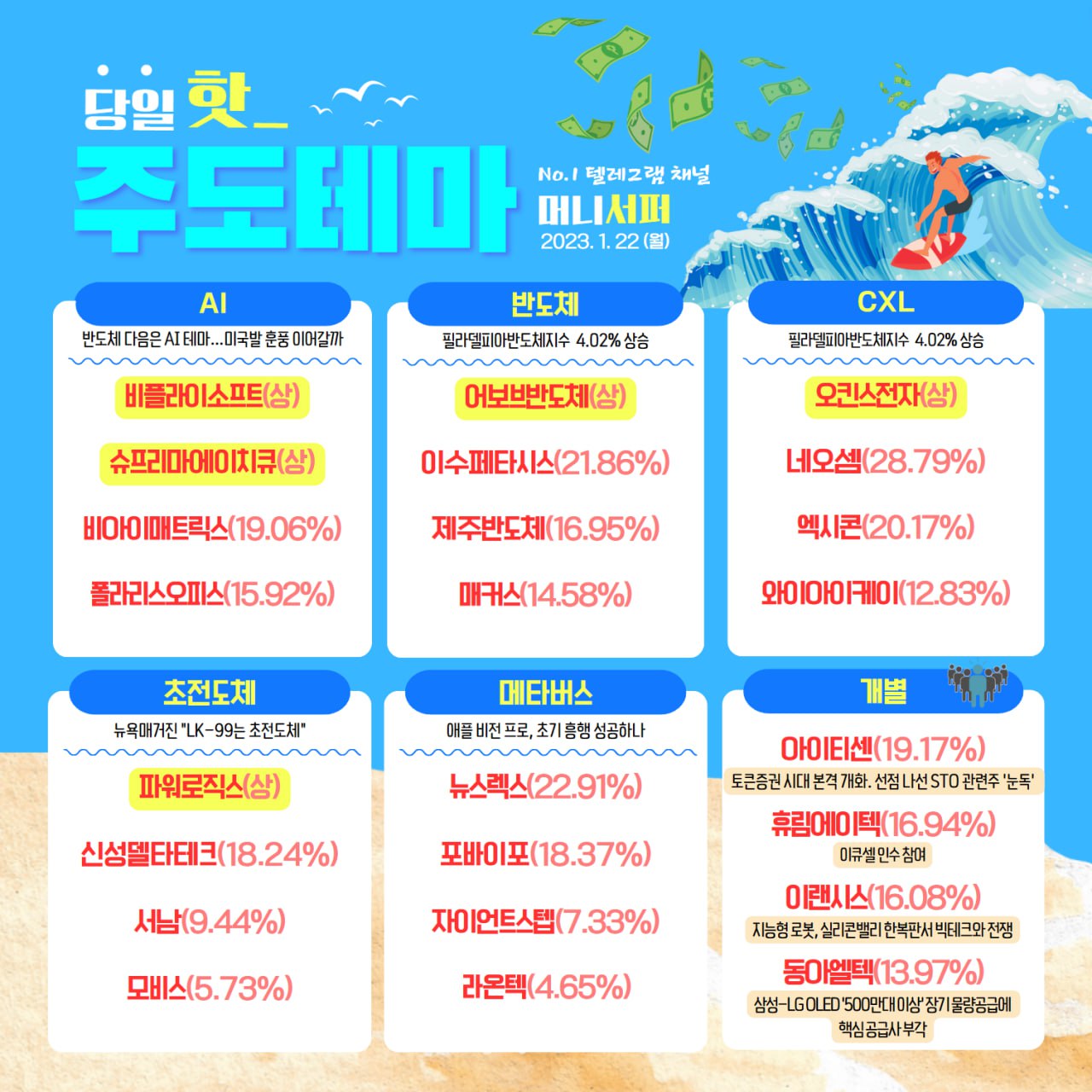 ★한국증시 주도 테마 2024년 1월 22일★