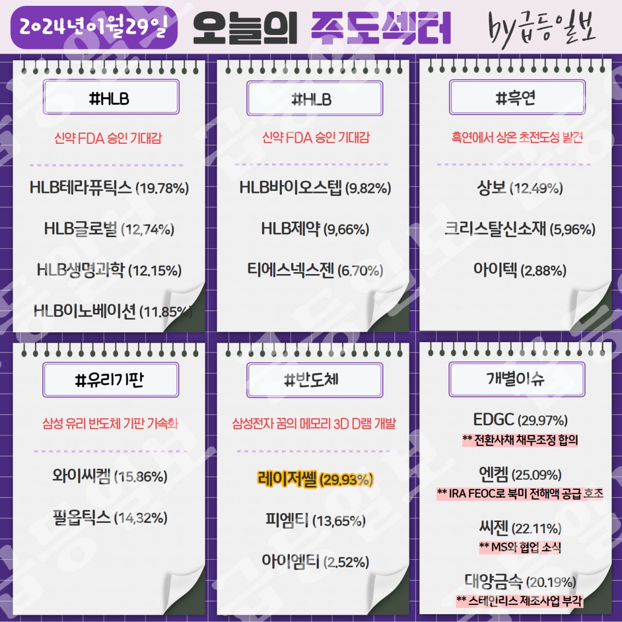 한국증시 주도 테마 ★ 반도체 HLB 유리기판 ★ 레이저쎌 HLB테라퓨틱스 와이씨켐