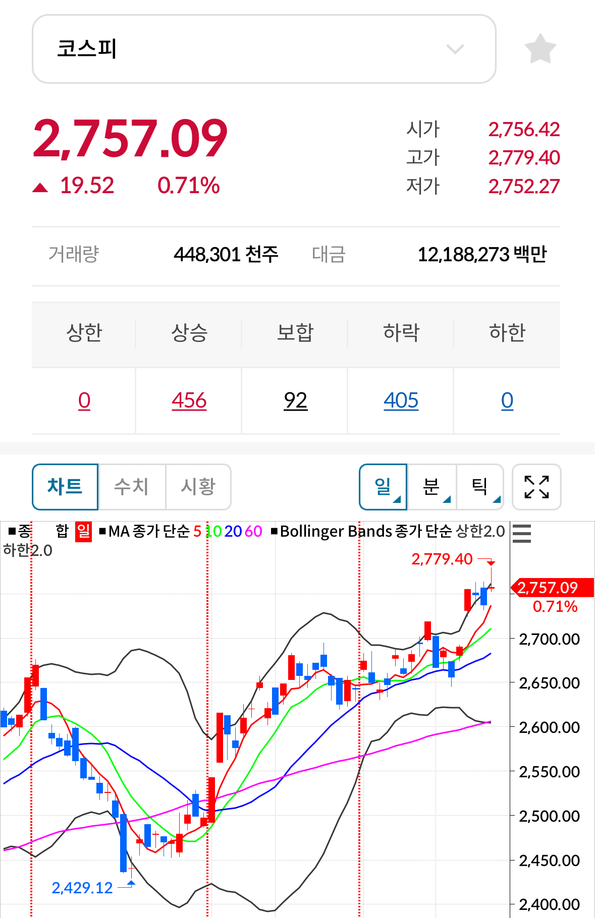 * 코스피 전일대비 상승(양봉) 마감