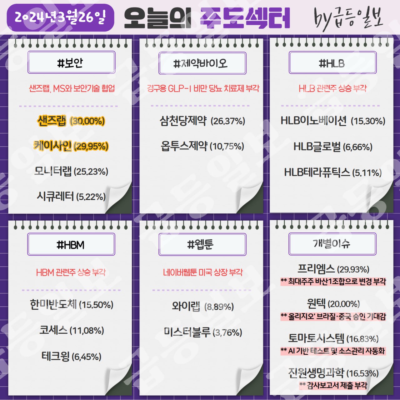 ★한국증시 주도 테마 2024년 3월 26일★