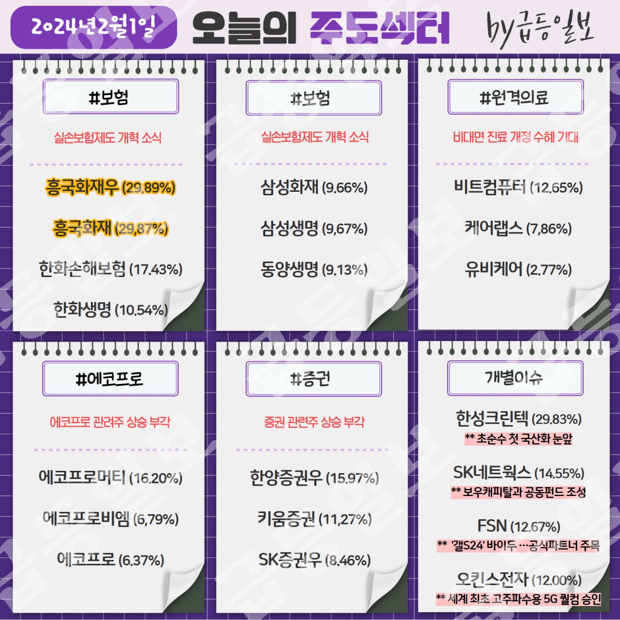 한국증시 주도 테마 ★ 보험 에코프로그룹 증권 ★ 흥국화재우 흥국화재 에코프로머티 한양증권우