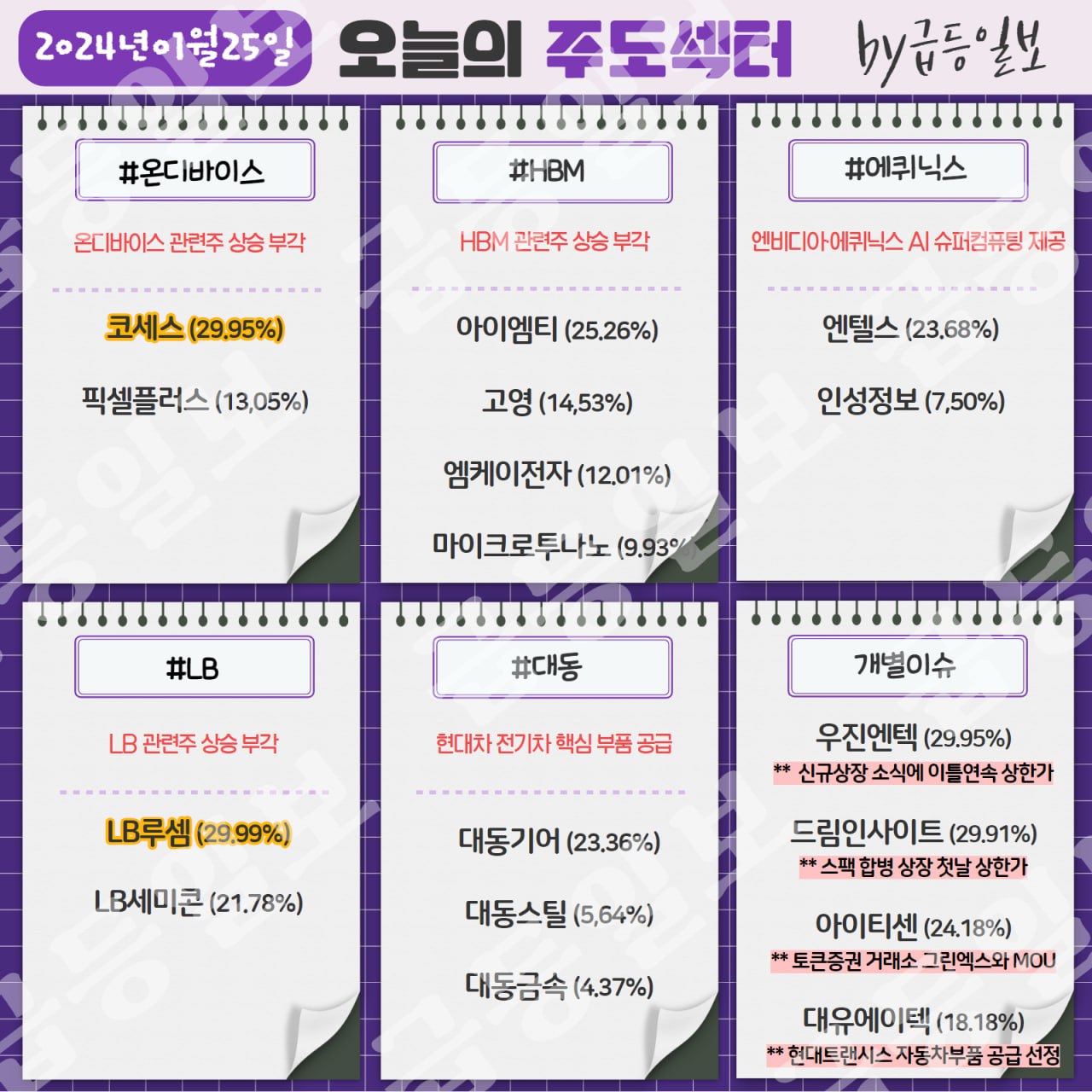 ★한국증시 주도 테마 2024년 1월 25일★