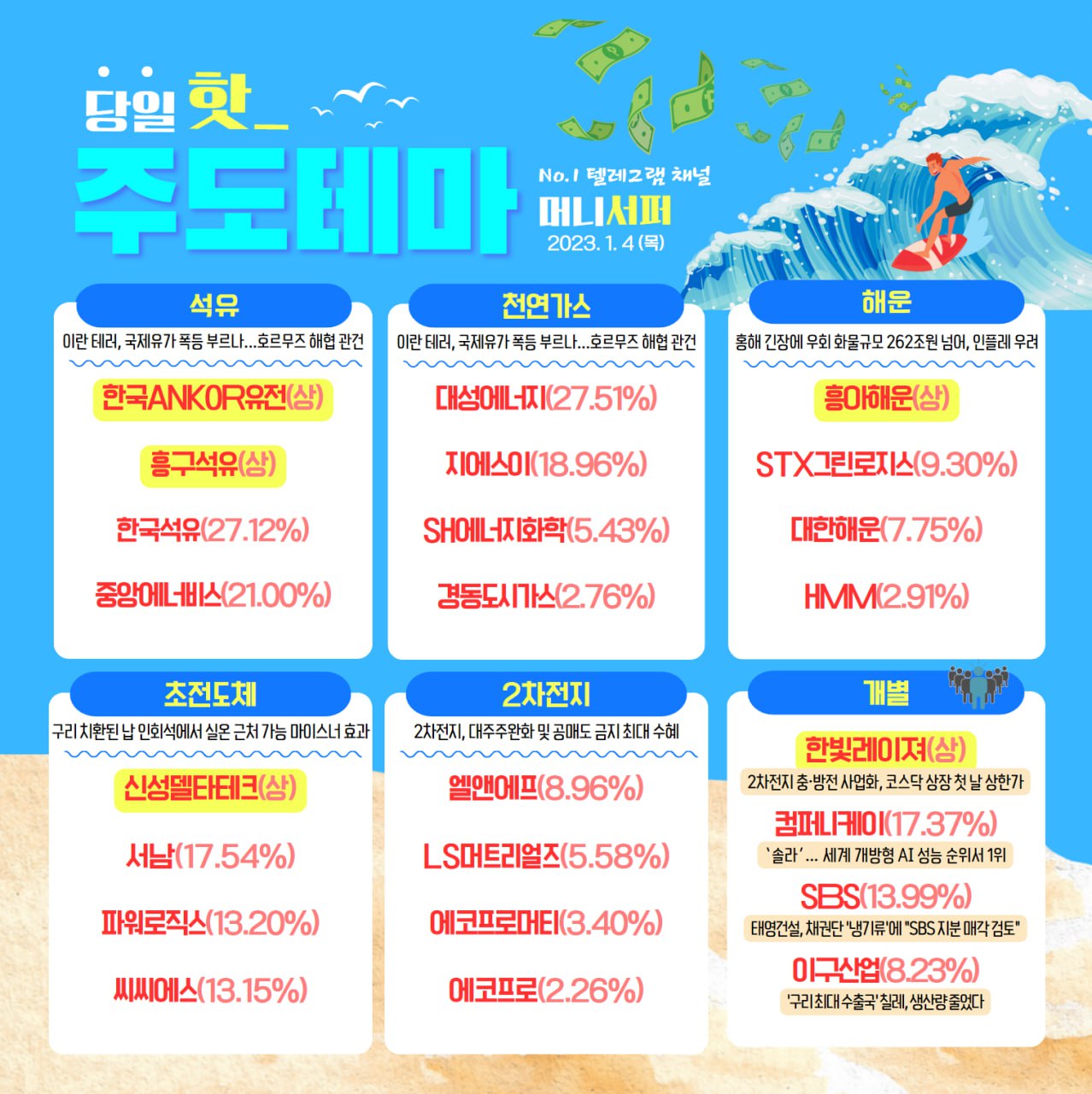 ★한국증시 주도 테마 2024년 1월 4일★