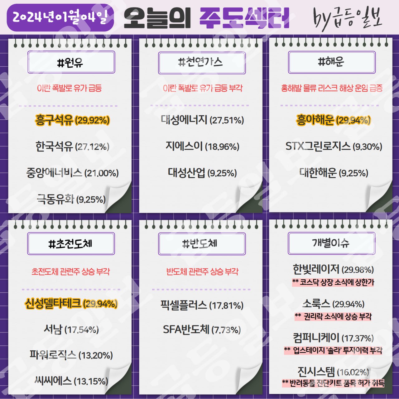 한국증시 주도 테마 ★ 원유 천연가스 해운 초전도체 ★ 흥구석유 한국ANKOR유전 대성에너지 지에스이 흥아해운 신성델타테크 서남