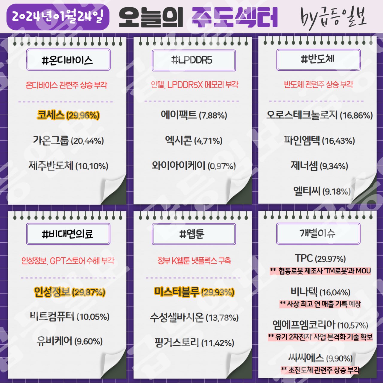 ★한국증시 주도 테마 2024년 1월 24일★