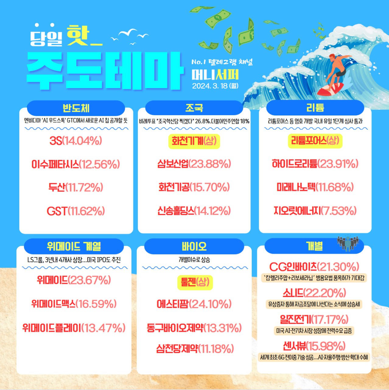 ★한국증시 주도 테마 2024년 3월 18일★