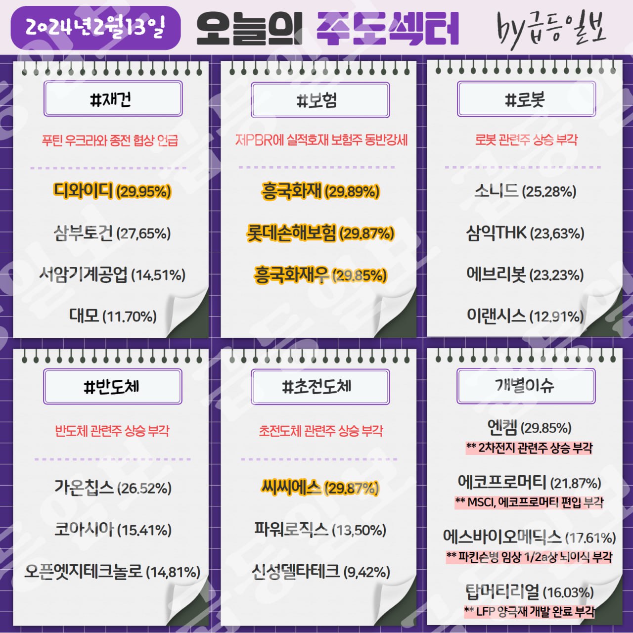 ★한국증시 주도 테마 2024년 2월 13일★