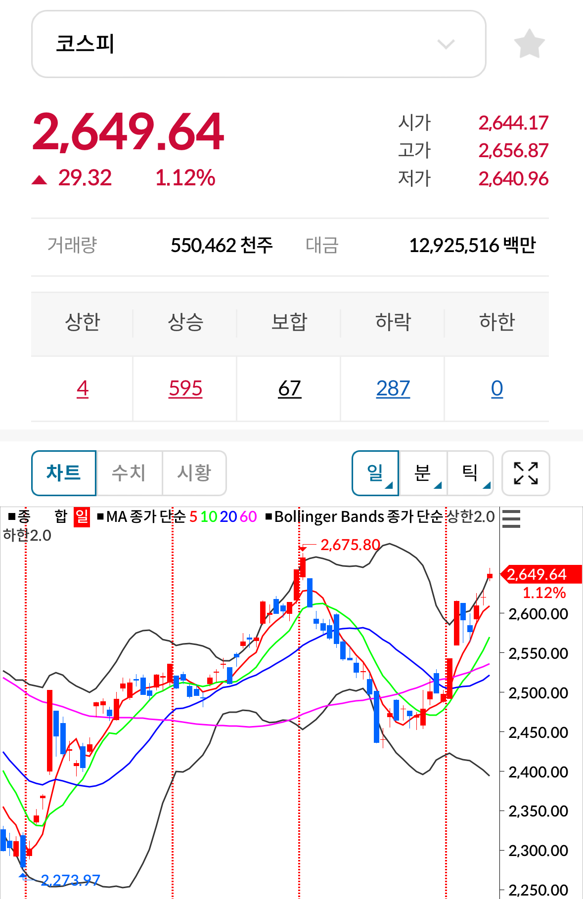 * 코스피 전일대비 상승(양봉) 마감
