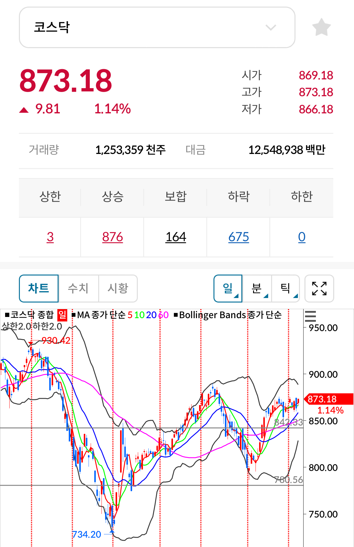 * 코스닥 전일대비 상승(양봉) 마감