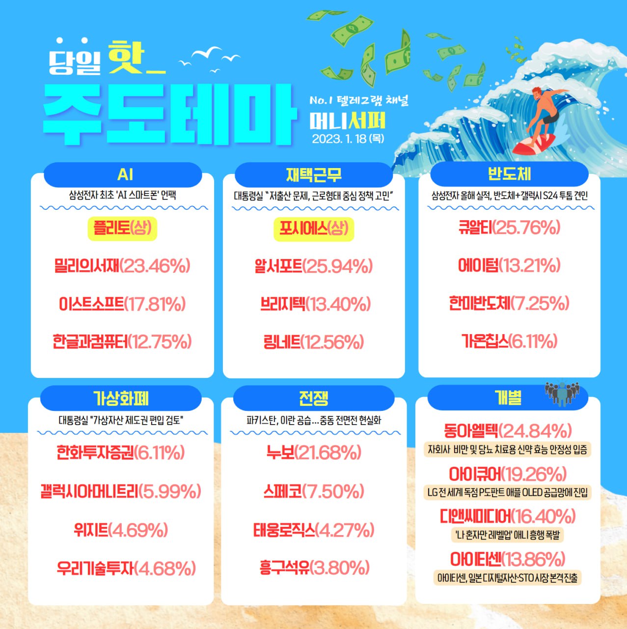 한국증시 주도 테마 ★ AI 재택근무 반도체 저출산 ★ 플리토 밀리의서재 포시에스 알서포크 큐알티 깨끗한나라우