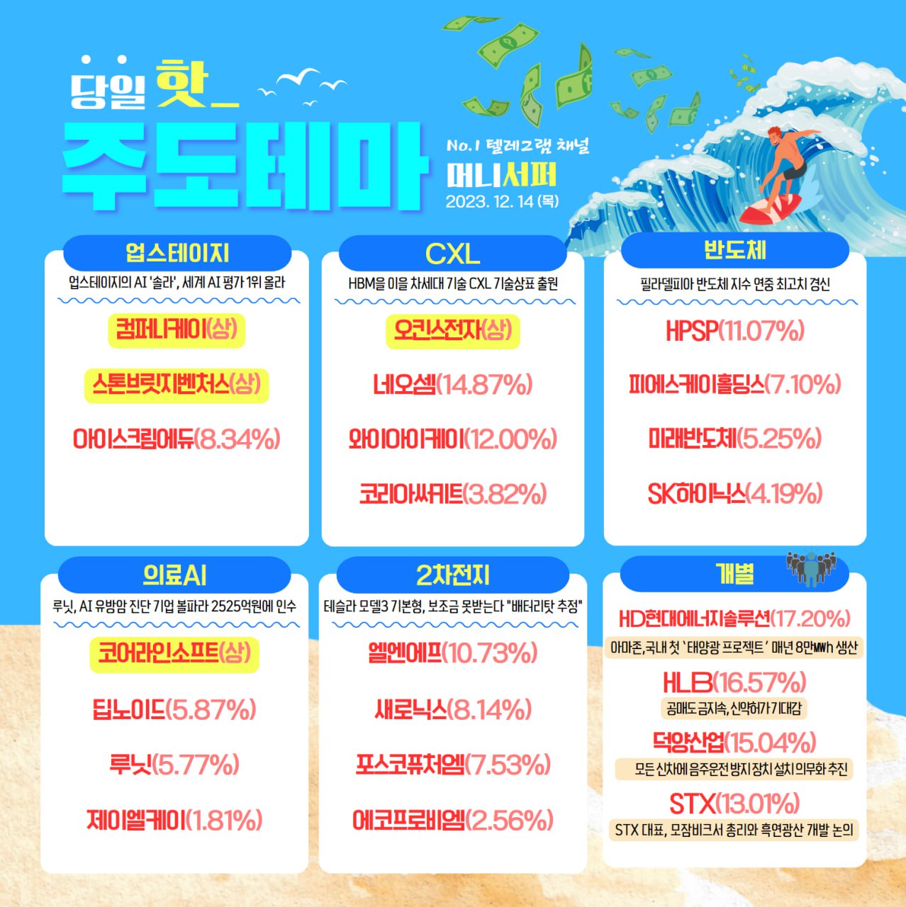 ★한국증시 주도 테마 2023년 12월 13일★ CXL(반도체), 한동훈, 이정재 , 야놀자 네오셈 오킨스전자 코리아써우 대상우 그래디언트 CXL(computer express link)은 두뇌 격인 CPU(중앙처리장치)와 메모리 반
