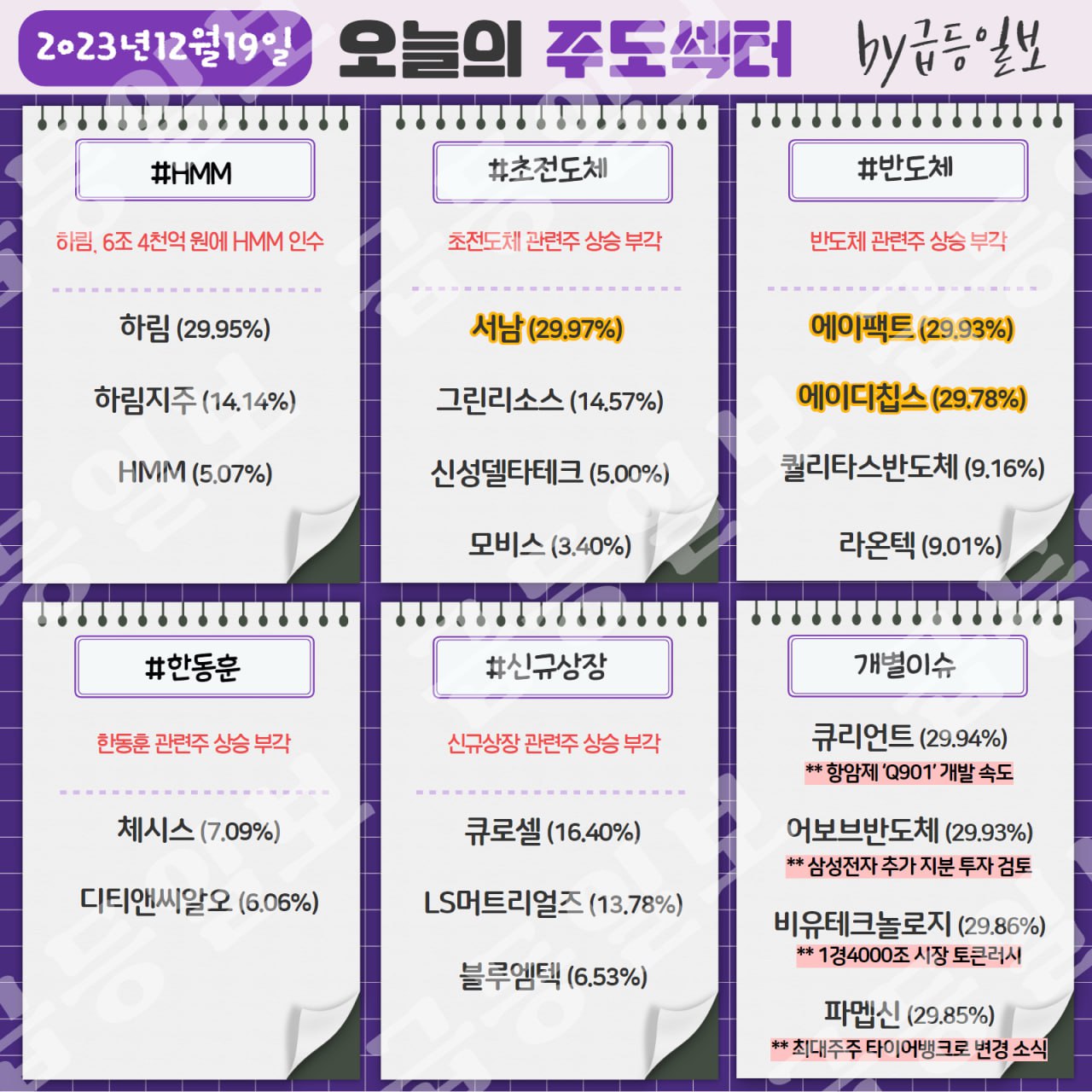 한국증시 주도 테마 ★ 반도체 네마틱 HMM인수 ★ 어보브반도체 에이팩트 에이디칩스 서남 하림