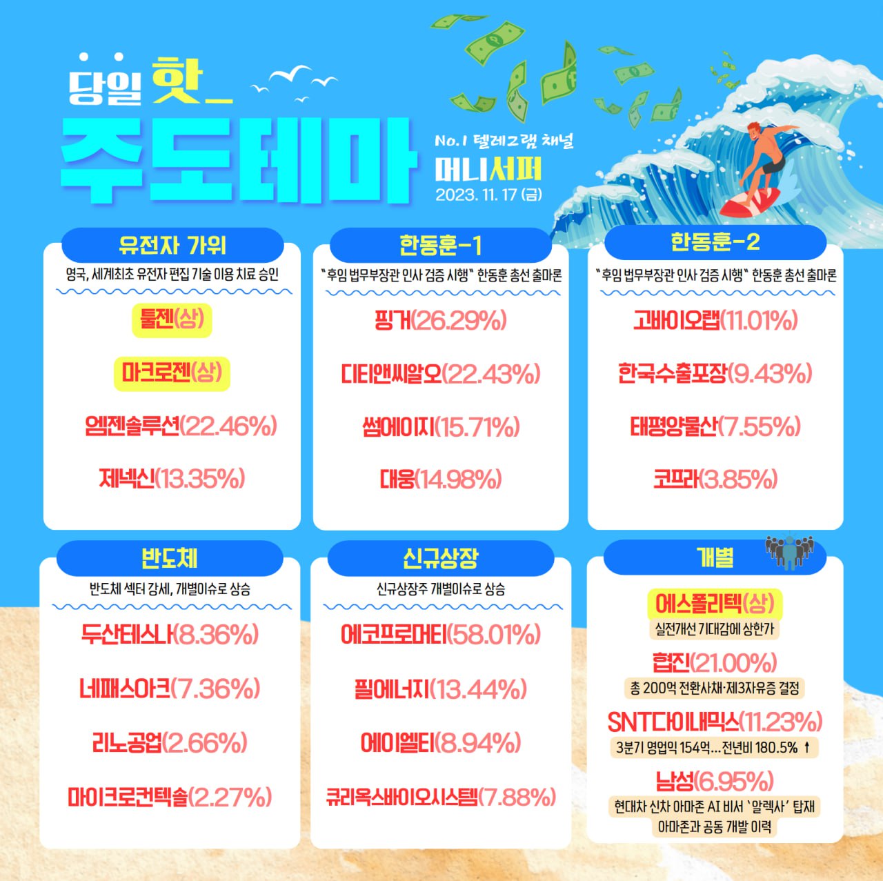 한국증시 주도 테마 ★ 유전자가위 한동훈 반도체 신규상장 ★
