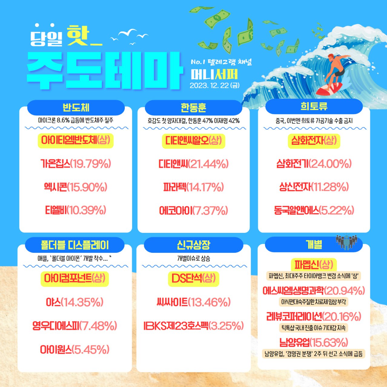 한국증시 주도 테마 ★ 희토류 한동훈 반도체 폴더블 ★ 삼화전자 삼화전기 디티앤씨알오 디티앤씨 아이티엠반도체 가온칩스 아이컴포넌트