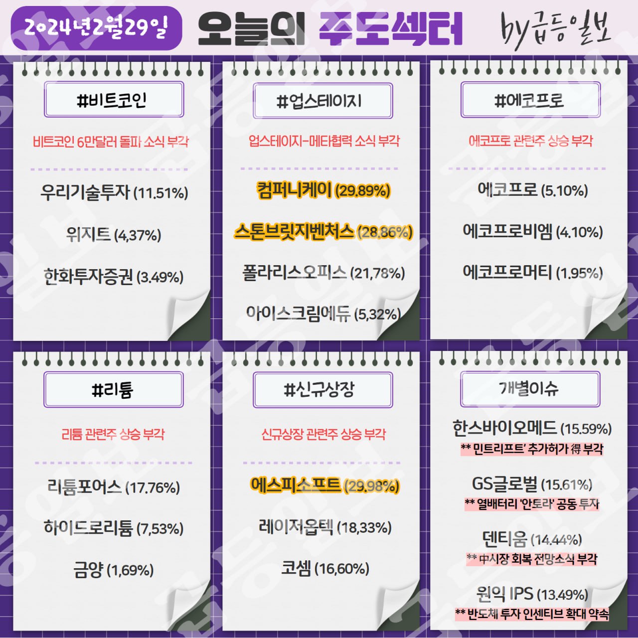 ★한국증시 주도 테마 2024년 2월 29일★