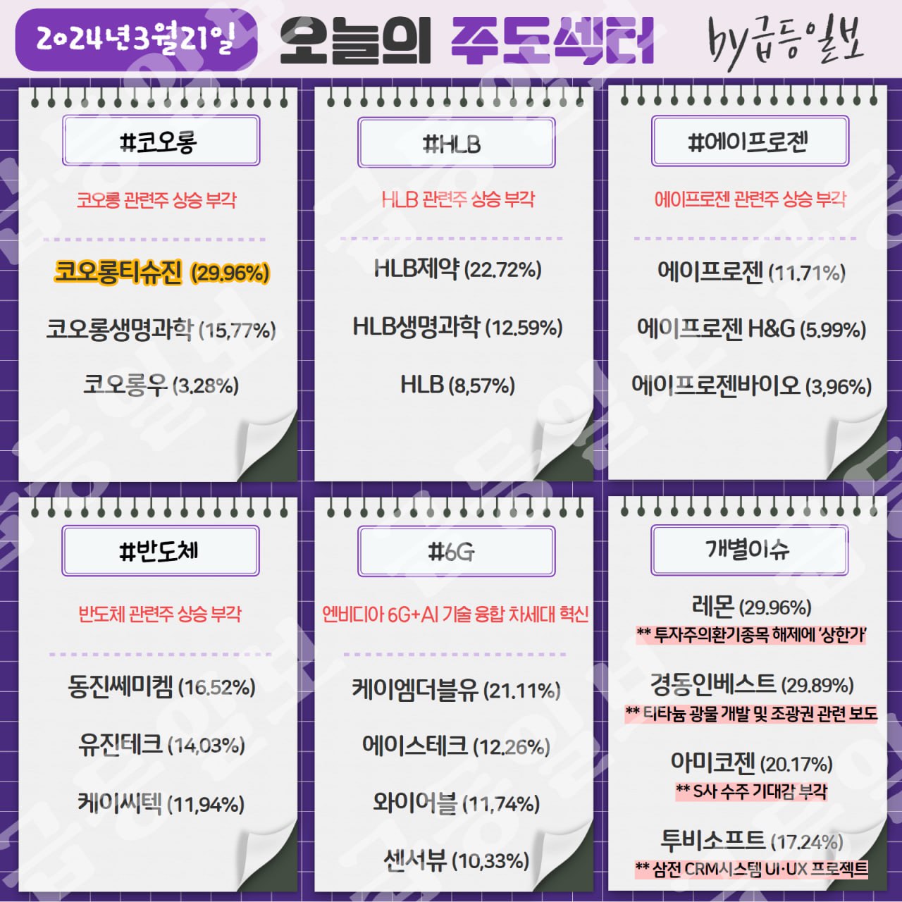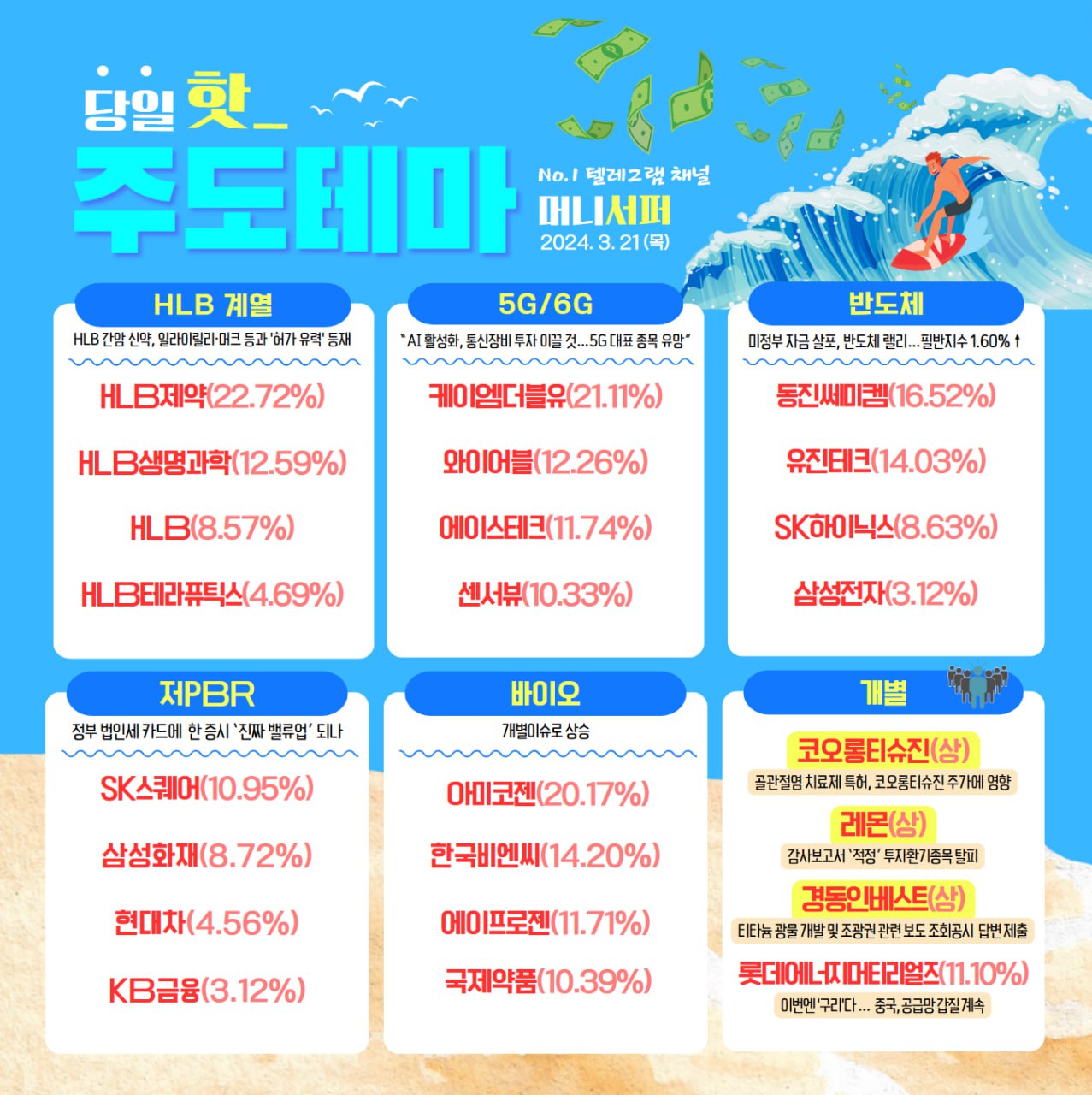 한국증시 주도 테마 ★ HLB관련 코오롱관련 6G ★ HLB제약 코오롱티슈진 케이엠더블유